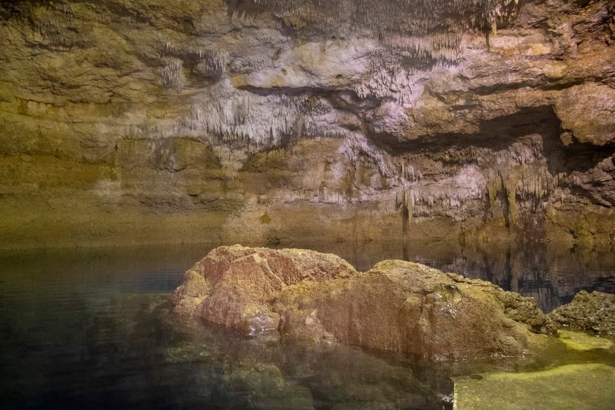 Snorkeling at Cenote Cristalino reveals small fish and interesting rock formations along the edges. The calm water and excellent visibility make it a great spot for beginners to practice with a mask and snorkel before tackling larger cenotes like Gran Cenote or Dos Ojos.