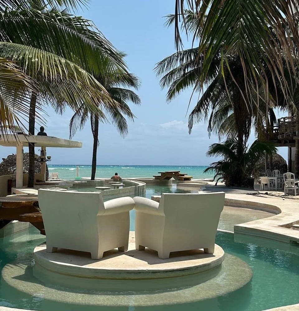 Day passes range from 300–600 MXN per person (~$17–33 USD) depending on the season, though some visitors report being able to walk in from the beach without a cover. The club is open from 8 AM to midnight. It is located further north from the main tourist strip, so expect a quieter setting.